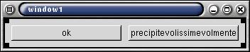 Notate che la funzione di callback delete() ritorna TRUE; ritornando questo valore semplicemente informiamo il window manager di voler continuare la nostra applicazione; ritornando il valore FALSE, al contrario, il wm emetterà il segnale "destroy" che chiuderà il nostro programma. Detto ciò una prima applicazione che potrebbe essere realizzata è una finestra di dialogo che chieda all'utente se voglia effettivamente uscire o no, in caso di risposta affermativa si ritornerà FALSE e il programma verrà terminato, altrimenti si ritornerà TRUE e si continuerà normalmente.