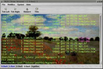 L'articolo...Multi Gnome Terminal (MGT) è una versione estesa del terminale standard di GNOME che permette di aprire più terminali in una stessa finestra, di passare rapidamente dall'uno all'altro tramite la pressione di opportune combinazioni di tasti, di visualizzare lo stato dei terminali non visibili e altro ancora. Tale progetto si ispira a konsole, il terminale di KDE 2.x e a screen, l'intramontabile applicativo GNU per la gestione di più terminali in un'unica console. |