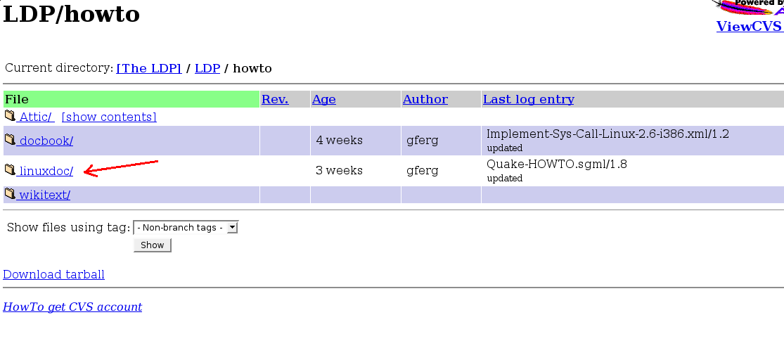 La prima cosa da fare quando si decide di tradurre un HOWTO è recuperarne il sorgente. Nel sito di TLDP tutti gli HOWTO si trovano nel repository CVS del sito. CVS, acronimo di Concurrent Versioning System, è un software per lo sviluppo collaborativo molto utilizzato nei progetti ai quali lavorano programmatori di tutto il mondo.