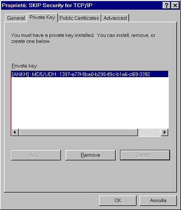 Terminata l'installazione del software occorre scegliere una password (Pannello di Controllo, SKIP Security for TCP/IP, Proprietà, tab General):