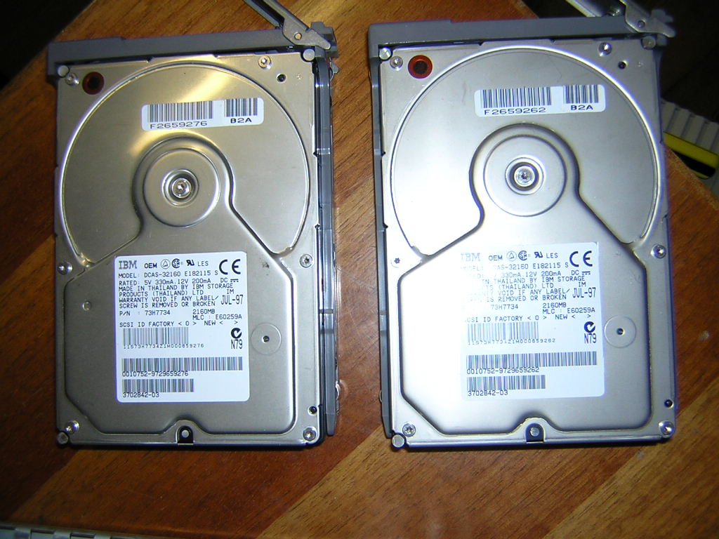 Dischi fissi 2 x IBM DCAS-32160 2.1GB 3"½ 5400 RPM Single Ended Fast SCSI