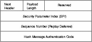 L'header AH è lungo 24 bytes. Il primo byte è detto Next Header, contiene il protocollo dell'header seguente. In tunnel mode viene incapsulato un intero datagramma IP: il valore di questo campo è dunque 4. Quando invece in transport mode viene incapsulato un pacchetto TCP, il valore è 6. Il byte seguente indica la lunghezza del payload. Quindi vi sono 2 byte riservati. Seguono 32 bit contenenti il Security Parameter Index (SPI), che indicano quale SPI utilizzare per interpretare correttamente il pacchetto al momento della ricezione. I successivi 32 bit sono per il Sequence Number, per proteggersi da attacchi di tipo replay. Infine gli ultimi 96 bit contengono l'hash message authentication code (HMAC). Quest'ultimo protegge l'integrità del pacchetto poichè solo chi conosce la chiave segreta può crearlo e verificarne l'esattezza.