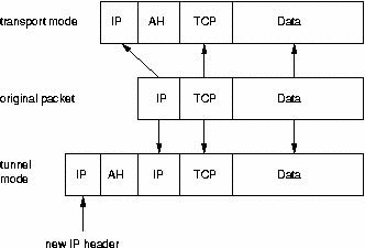 IPsec usa due differenti protocolli - AH ed ESP - per fornire l'autenticazione, l'integrità e la confidenzialità della comunicazione. Può proteggere l'intero datagramma IP o solamente i protocolli di alto livello. I diversi modelli di funzionamento sono detti tunnel mode e transport mode. Nel tunnel mode il datagramma IP viene completamente incapsulato in un nuovo datagramma IP utilizzando IPsec. In transport mode solo il payload del datagramma IP viene trattato da IPsec che inserisce il proprio header tra l'header IP ed i livelli superiori (si veda Figure 1).
