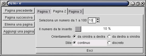 Terminiamo, con questa puntata, la presentazione dei principali widget messici a disposizione da GTK+. Con gli elementi che conosciamo dovremmo essere in grado di realizzare piccole applicazioni grafiche. Si, lo so, ;-) non ho dimenticato menu e toolbar, ma li affronteremo con Gnome, che permette di trattarli in modo più semplice e uniforme rispetto a GTK+.