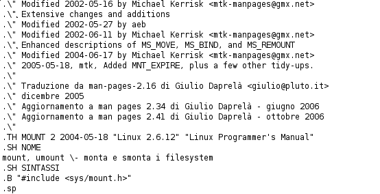 Infine per visualizzare a video la pagina di manuale che si sta traducendo basta richiamarla con il comando: