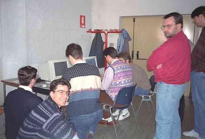 - Simone Chemelli, di spalle davanti al primo computer,
